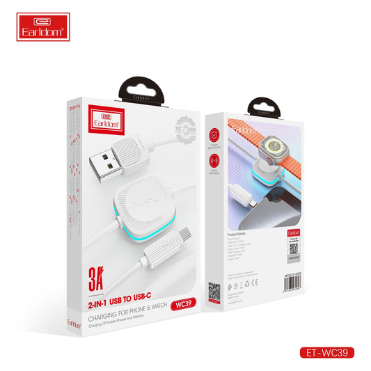 Earldom 2-in-1 USB to USB-C Charging Cable For Watch & Mobiles