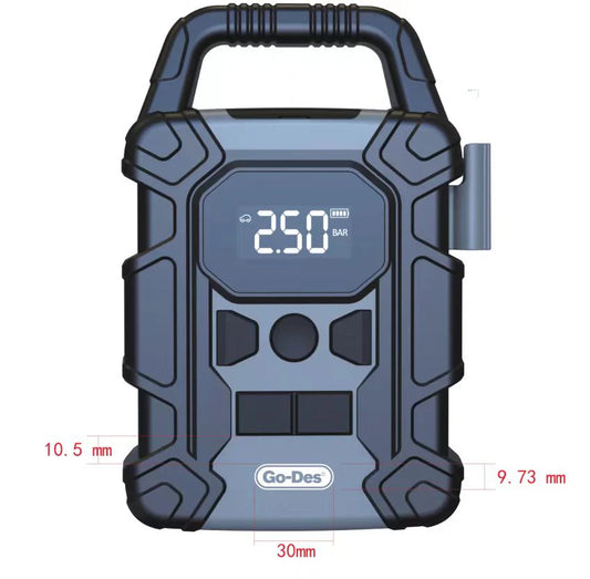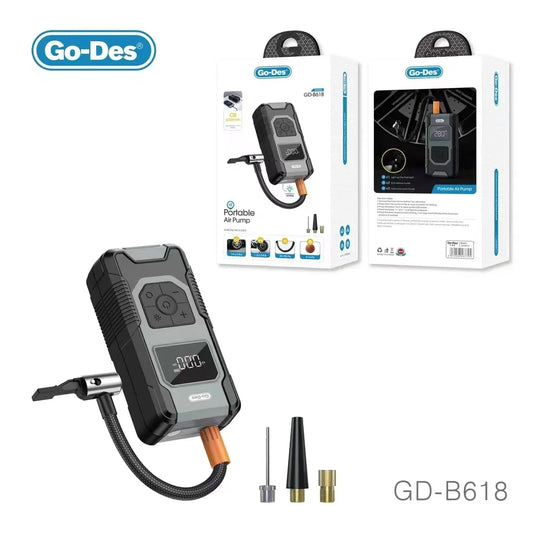 Go-Des Rechargeable Air Pump Tire Inflator Cordless Portable Compressor Digital Car Tyre Pump With 7500Mah Power Bank