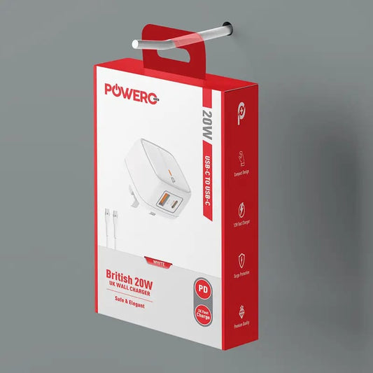 Powero+ British 20W Adapter with PD + QC Dual Port