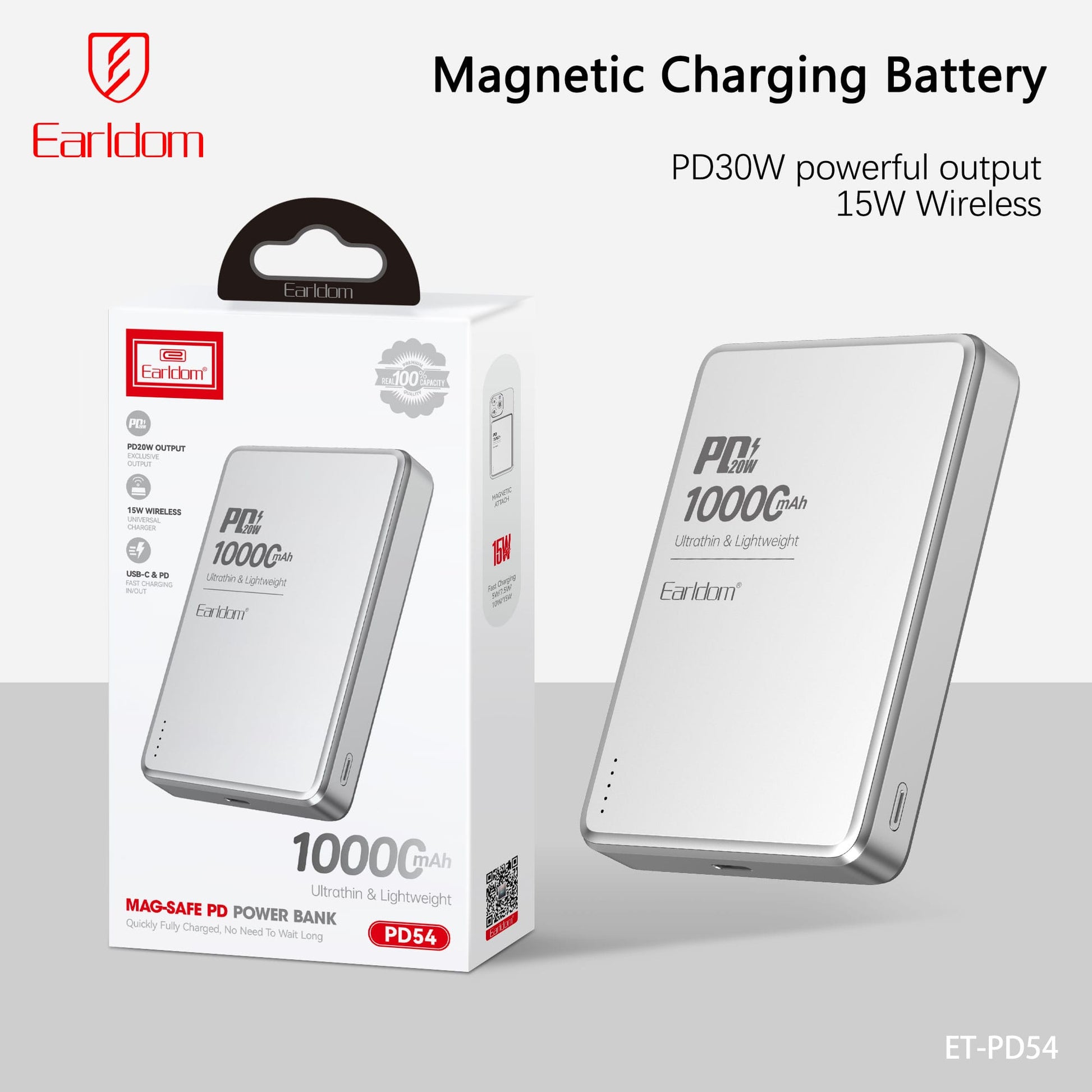 Earldom 10000mAh PD Wireless Magnetic Power Bank PD54