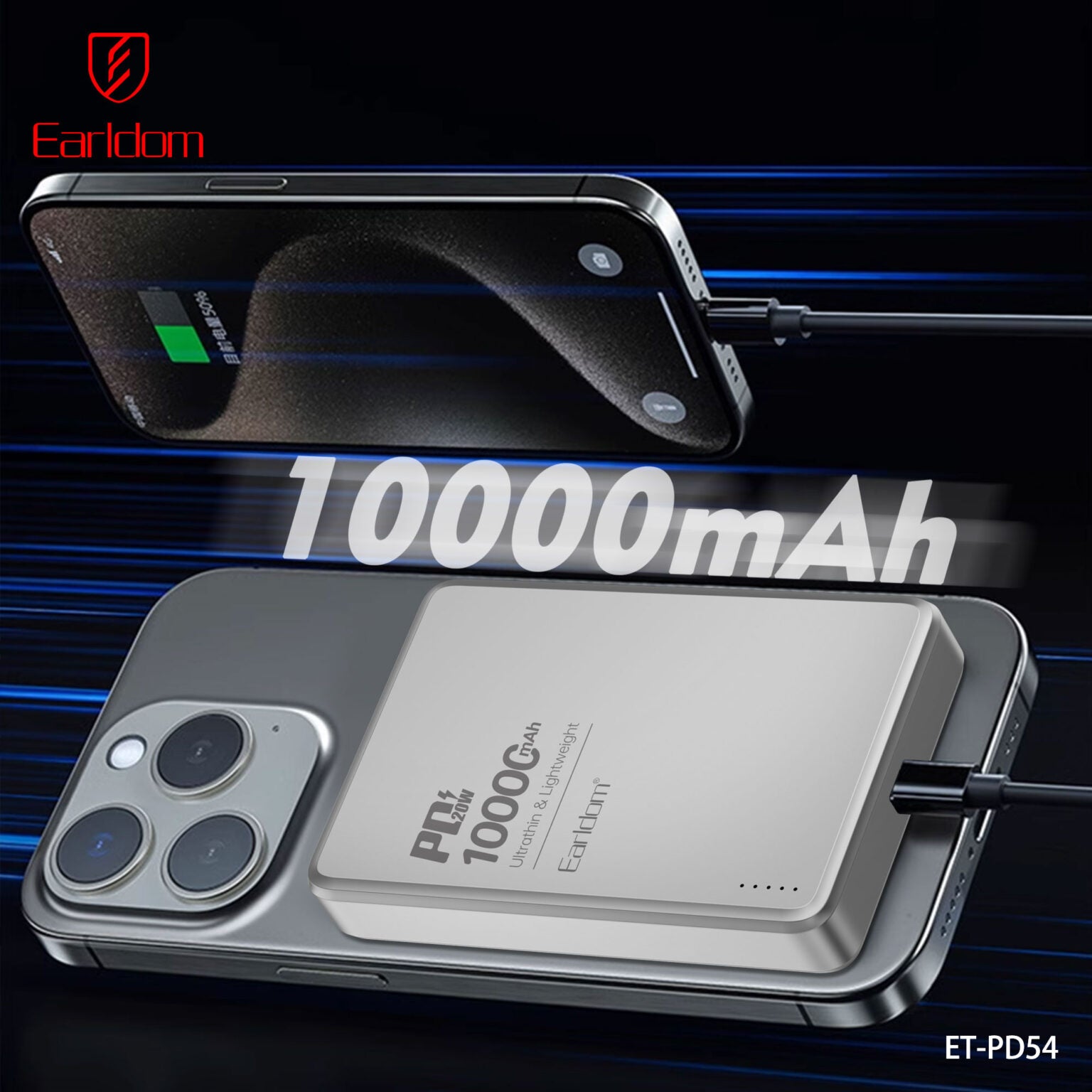 - 10000mAh high-capacity slim power bank, easy to carry