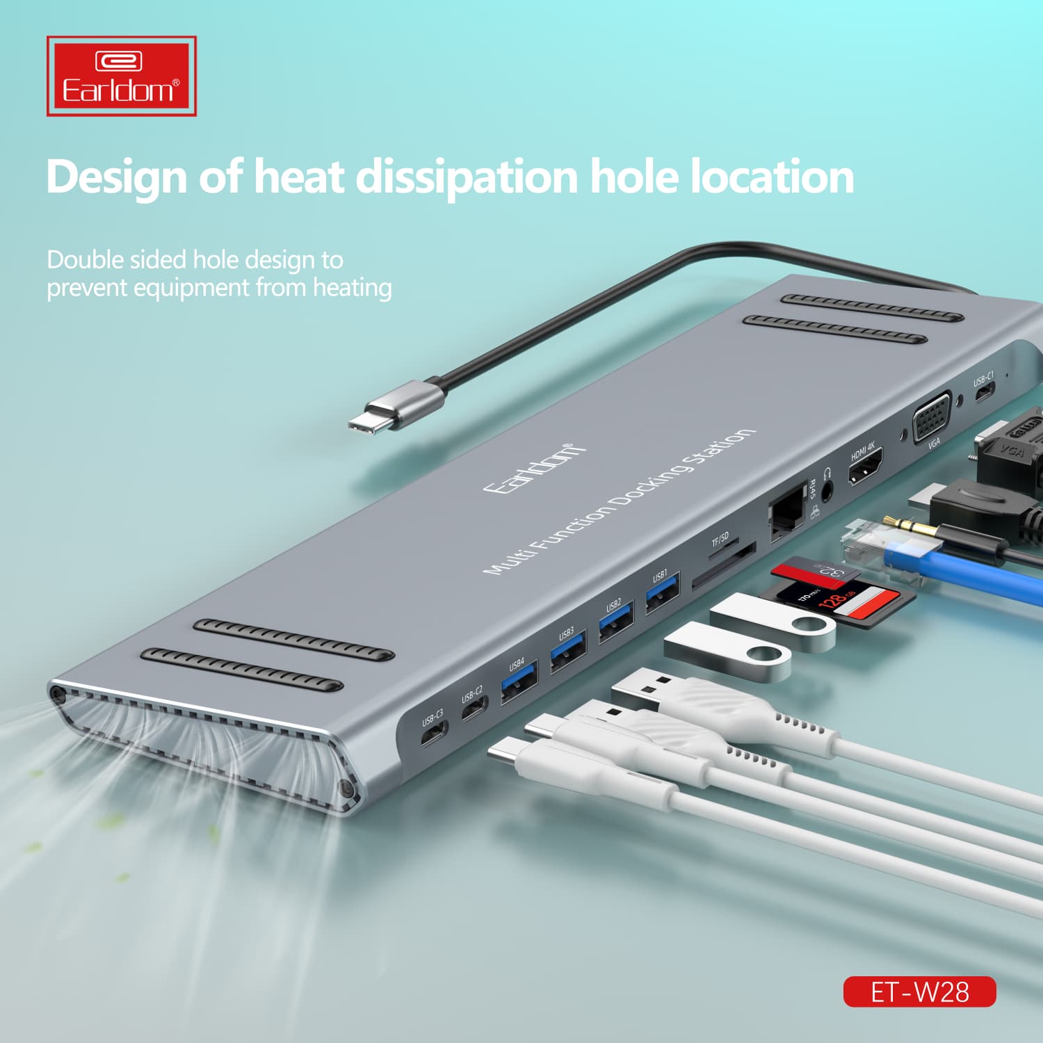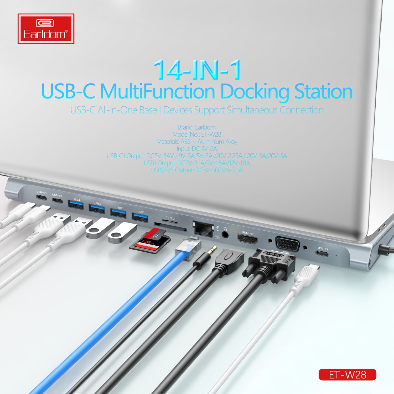 The Earldom ET-W28 is an all-in-one USB-C hub offering 14 different ports for multiple devices, making it perfect for a wide range of tasks, from work to entertainment. -