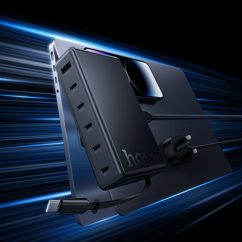 - Single USB-A, 5 Type-C ports and built-in Type-C cable charging station