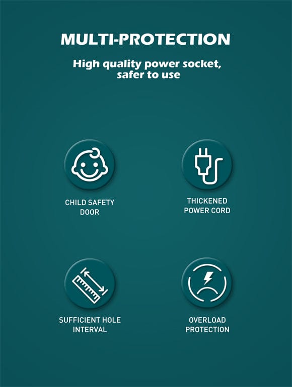 - 2M heavy-duty power cord can flow optimal power to connected devices.