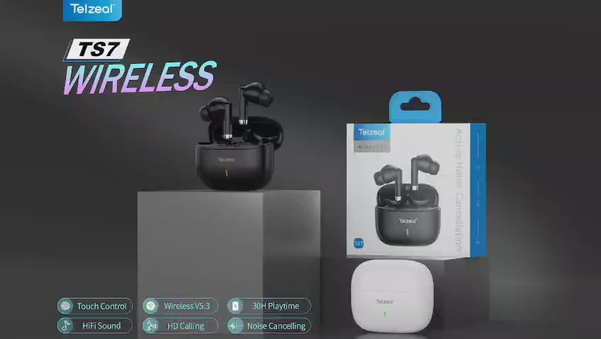 - Crafted for longevity, the TS7 supports up to 30 hours of total playtime with the charging case—enabling users to enjoy extended listening sessions and less frequent recharging throughout the week.